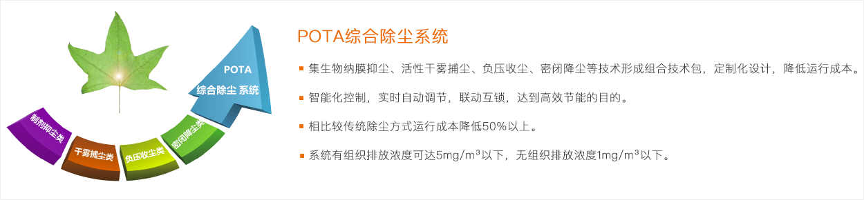 壹号娱乐除尘致力于为各行业粉尘治理提供综合解决方案,其引进的制剂抑尘技术,活性干雾技术和MANI 双层封闭处理技术都广泛应用于各行业粉尘处理领域。经过多年的摸索和实践,壹号娱乐 将环保技术元素卓有成效的融入其系统化解决方案中,形成了以四大除尘技术为核心,数十种系列产品为职称,根据各行业和工艺特点,形成定制化的除尘解决方案。