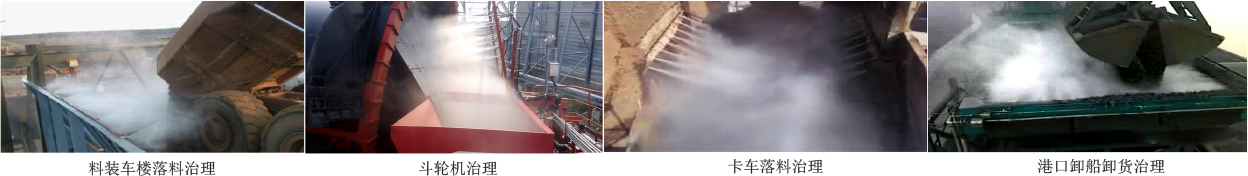 EZ/LP系列远程射雾器】 针对斗轮机部分,卡车装卸处,皮带下落处采用超细雾炮对于局部或者新增粉尘进行处理。 HP系列超细雾炮机】 超细雾泡可产生平均粒径 13μm 超细雾滴,达到捕尘,净化空气,降温降尘的作用,另外,超细雾炮移动灵活,可340 度自由旋转,距离了可达 60 米。